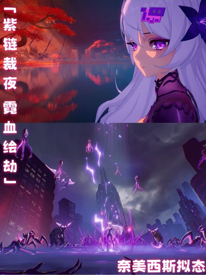 奈美西斯:紫黑高开衩旗袍+霓虹锁链刃,义眼闪烁危险红光💃🔪
