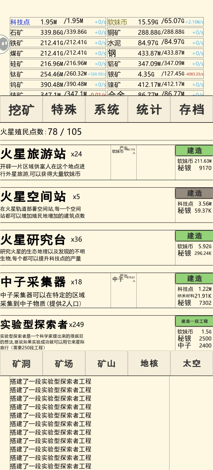 太空阶段需要特别特别多的科技点,然后最终目标修500段太空船坞,250段科技探索者,需要的时间简直离谱