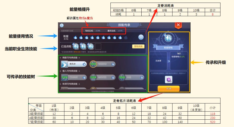 1、能量格提升、技能传承和升级(上线已更新至20)