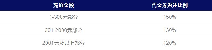 例:充值11元,返还11*1.5=16.5元,将获得等值于17元代金券,即代金券*17。