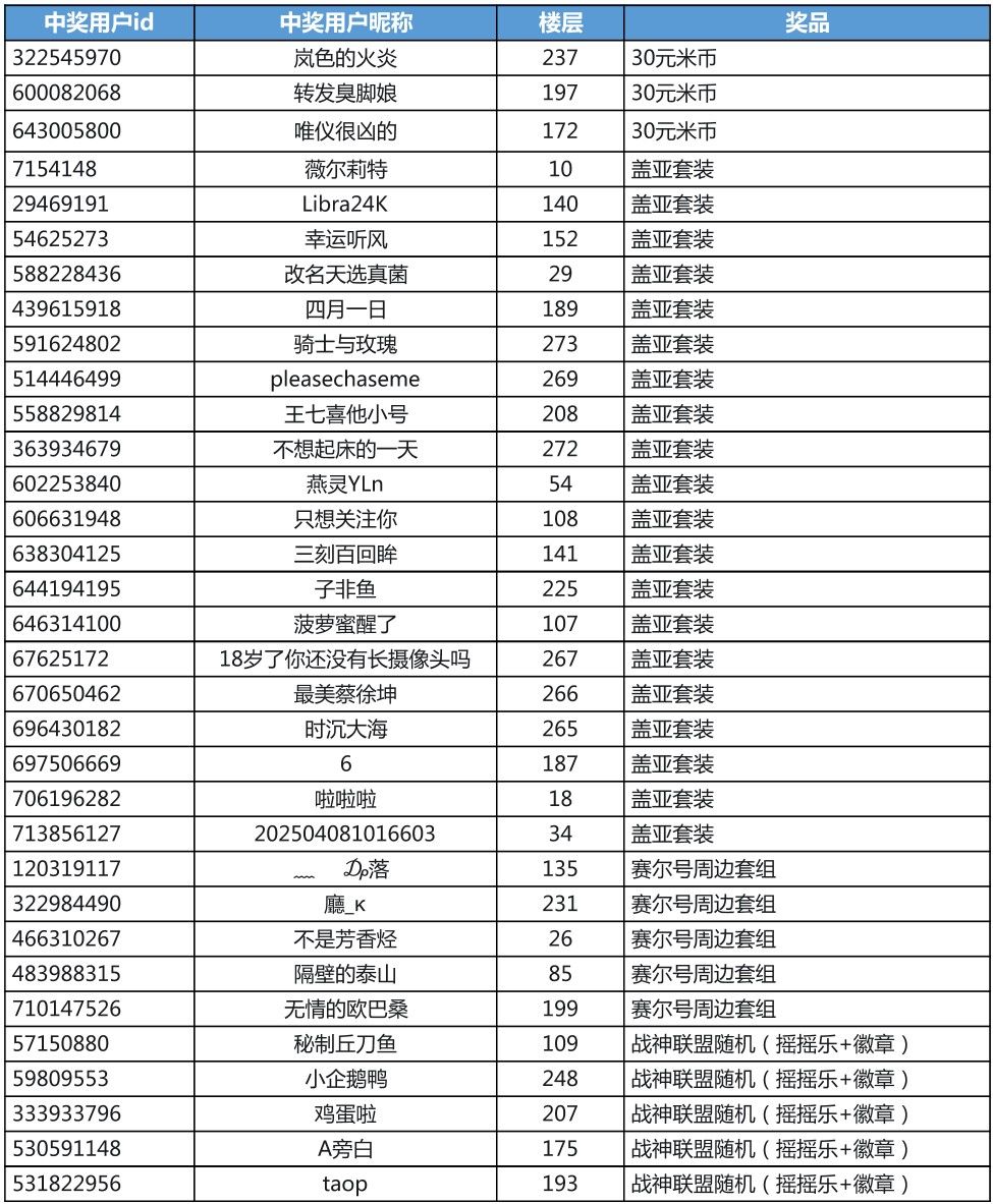 《赛尔号》盖亚生日会即将上线! 活动开奖啦!感谢大家的热情参与!!让我们恭喜以下获奖的赛尔们!(鼓掌!~(‾ ⌣‾~)