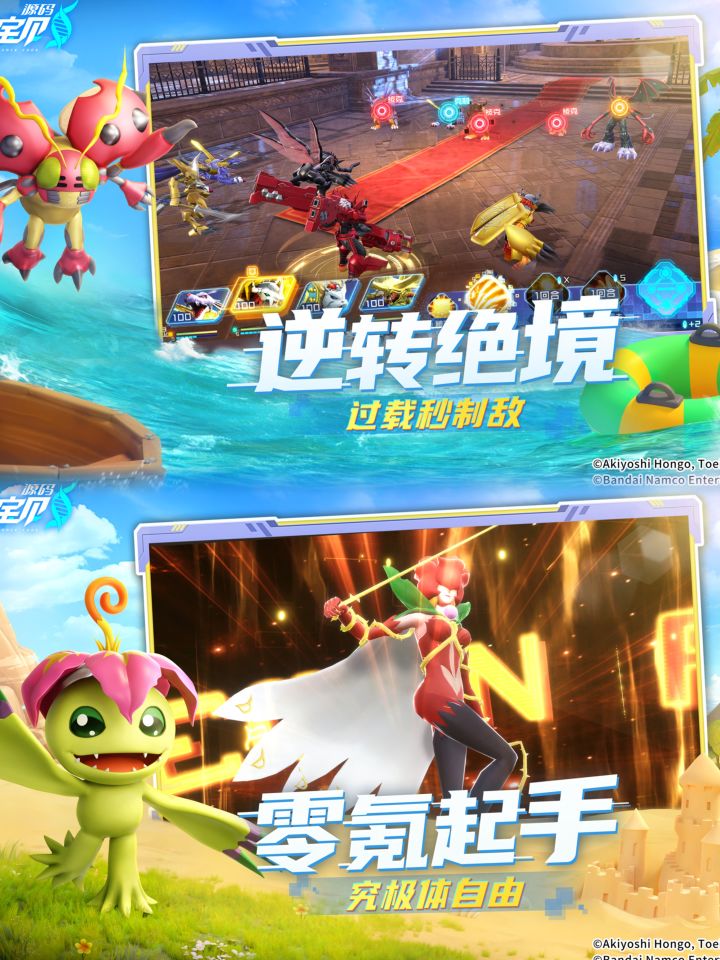 ✨游戏采用回合制战斗系统,数码宝贝技能多变,可在不同战局中担任不同角色,还有多样化奥义技能自定义搭配。