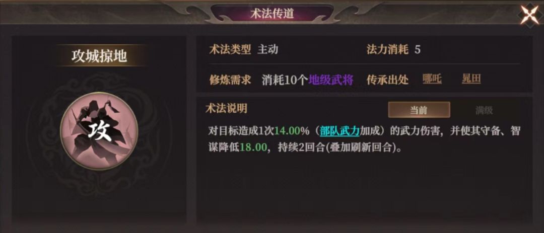 满级造成一次28%武力伤害,且降低36%守备和智谋,中后期性价比较高,吃武力伤害的阵容,副C和辅助都可以带。