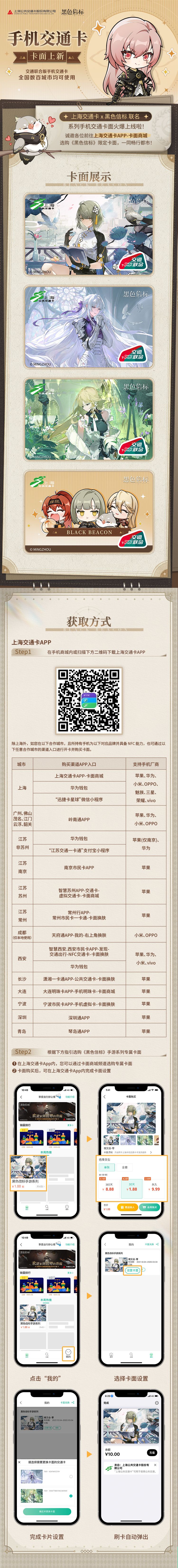 诚邀预见者前往上海交通卡APP,进入卡面商城,选购《黑色信标》限定卡面,与安啾一同畅行都市~