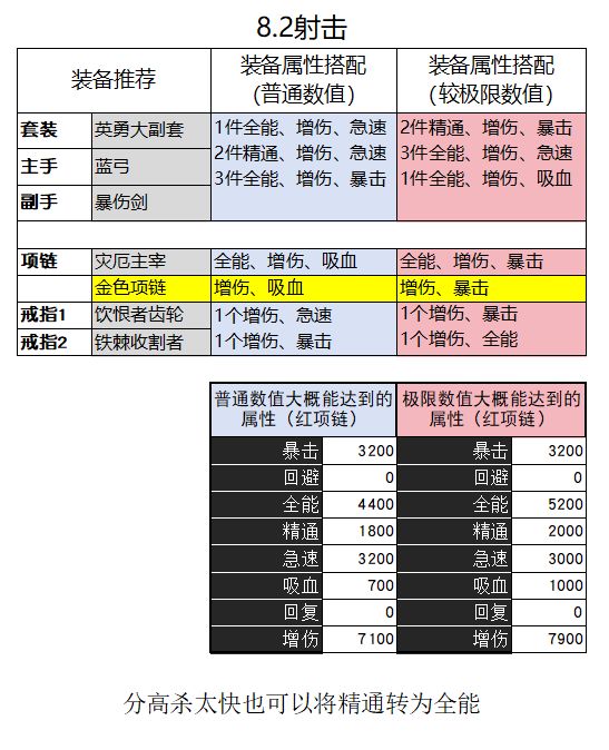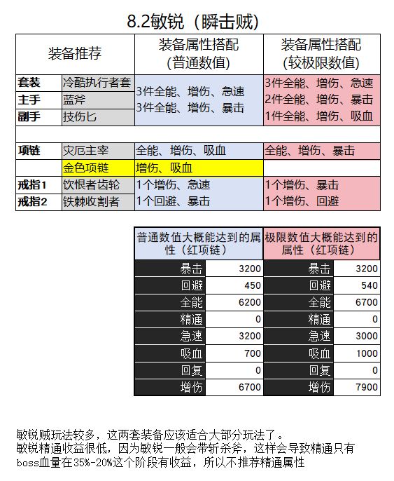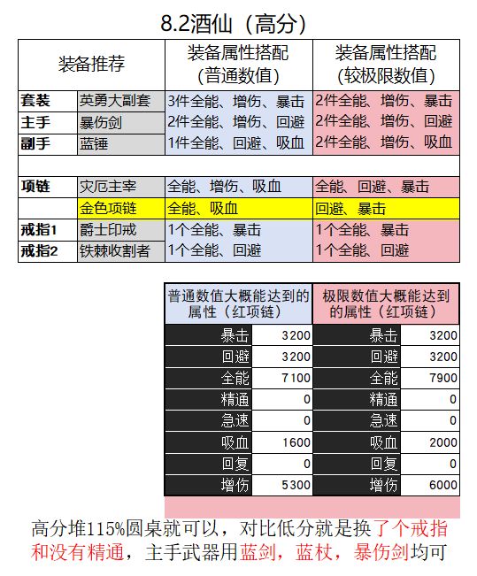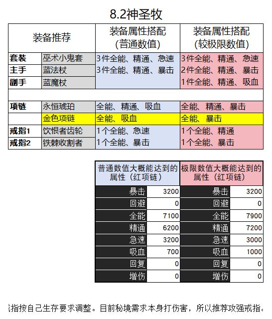 属性:暴击3120(装备3条+戒指1条),精通>增伤>全能,吸血1-2条(约1.5%-3%) 有300级披风就可以直接堆精增了,没有的话要补一些全能。