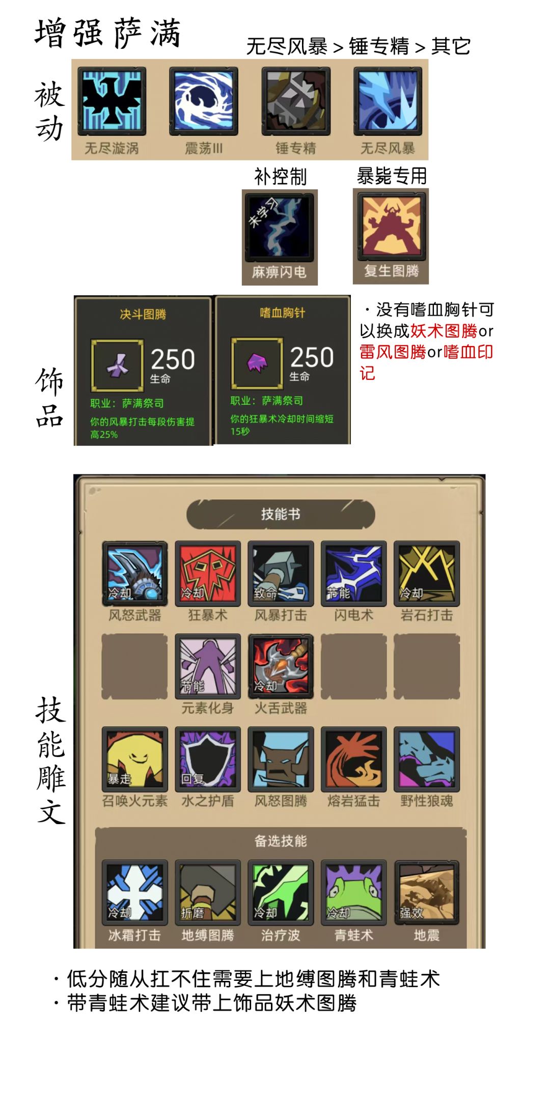 - 395更新:有了红饰品,可以放弃攻速武器了,主手改为造伤法杖(牧魂者法杖)或攻强法杖(猎魂者的镰杖)副手更换为蓝锤(深海战锤),项链可换395红项链灾厄主宰,具体可看新攻略https://www.taptap.cn/moment/679621019631092721