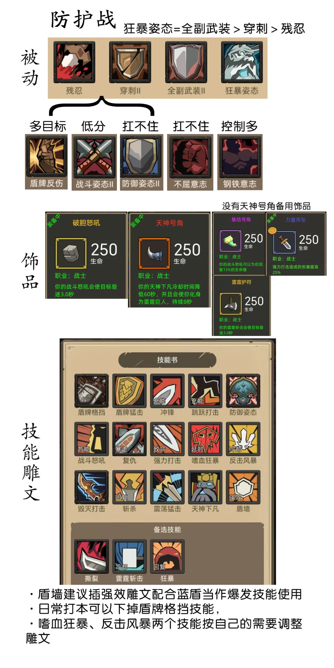 2025年8月2日更新:目前秘境打下来,单单凭借一个防战很难玩,所以更推荐防战武器战双修,而我实际在打本中。被动都会根据副本调整的,所以并没有什么万能公式,大家要根据自己情况调整属性和被动。