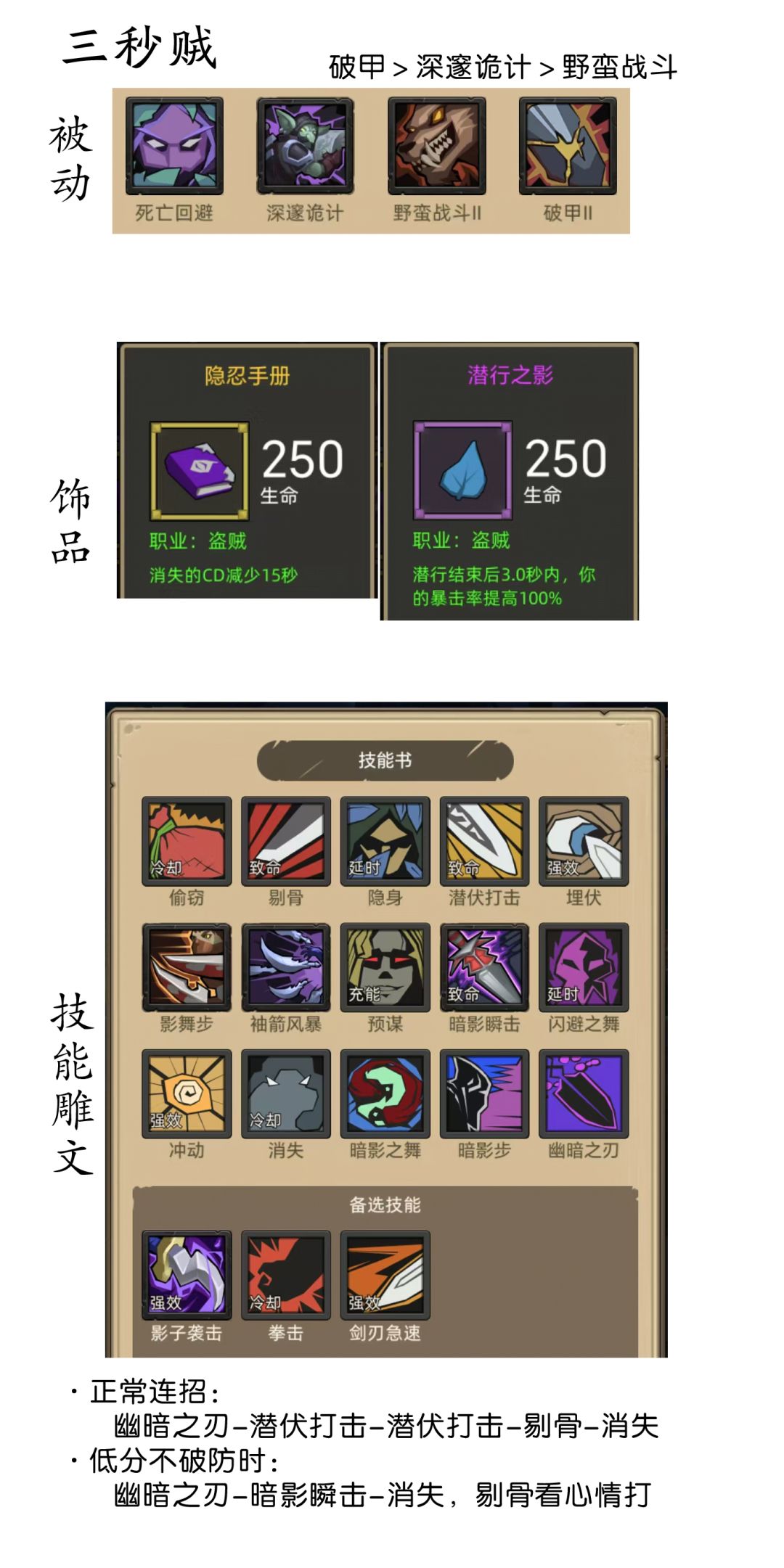 重大声明:如果你是攻击力很低的三秒贼,依靠幽暗之刃的无视护甲才能打出高输出,那就不要带这套装备了,换下面敏锐贼的那一套装备,这样可以有两个无视护甲的技能。