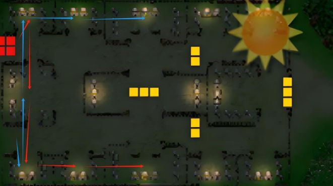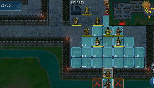 Ps:橙框区域上下通道伏兵(上面 4 弓 2 井阑 1 策士,下面 2 弓 2 井阑 4 策士),红框区域