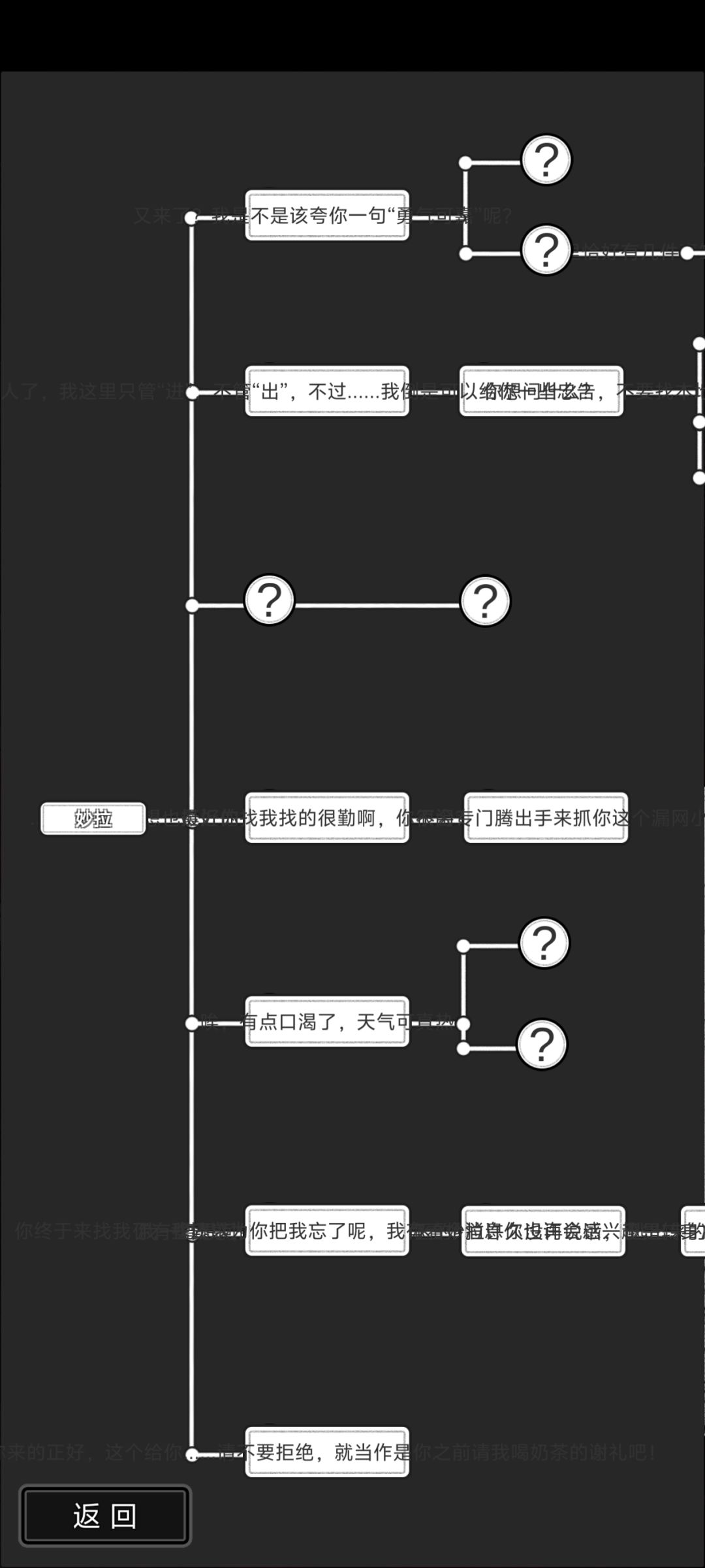 应该是暗改了,或者出bug了,试了很多次都没有,早期很容易能触发(跟辰辰有关,也许还跟妙拉也有关?最后两张图分别是两人第三段分支对话记录,显示的是问号证明第一句话就没触发,我也不清楚具体什么原因可能就是bug或者暗改了吧)(谁近期解锁该结局麻烦告知一下)