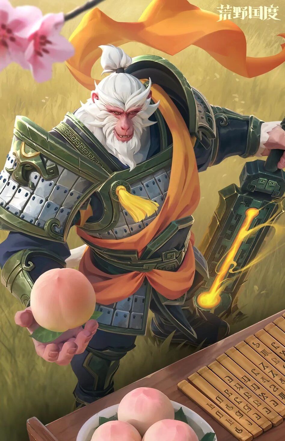 他的铁甲银发彰显勇武,而仙桃与毛笔则暗示智慧与责任。岁月的沉淀让他显得从容而深邃。