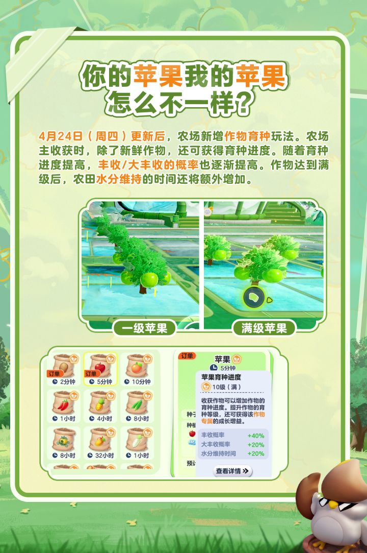 4月24日(周四)更新后,农场新增作物育种玩法。