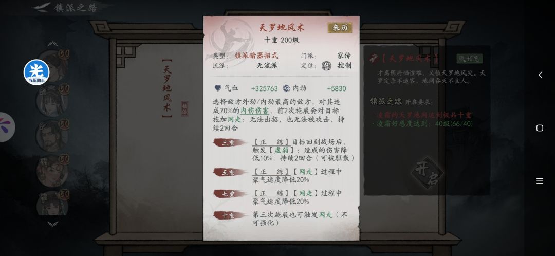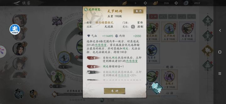看看她的天罗地网还有天罗地风术镇派效果,能网走外径或者是内径最高的侠客英雄,最多一局有触发三次。