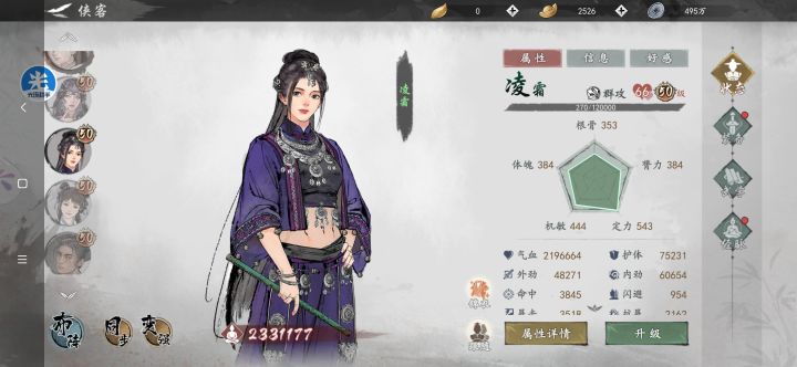 凌霜配上主角暗伤就是T0级别的,不信的话就去侠之奕里试一试