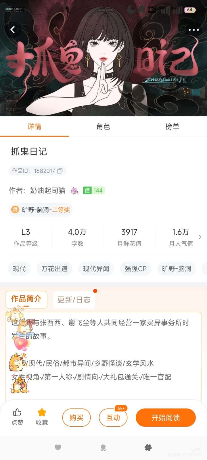 橙光做任务免费送鲜花,推荐《抓鬼日记》,这是一款在橙光平台上推出的中恐游戏,广受欢迎。玩家将成为女主角,经历一系列惊悚恐怖的冒险故事,感受其中的诡异与趣味。女主也是一个好宝宝,勇敢中又带点搞笑。
