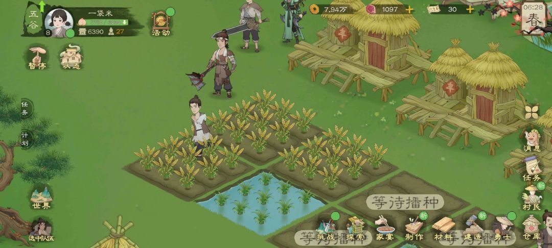 前期食物却必须种田,一个人可以管理四块地,开局直接用柳大富种就行了