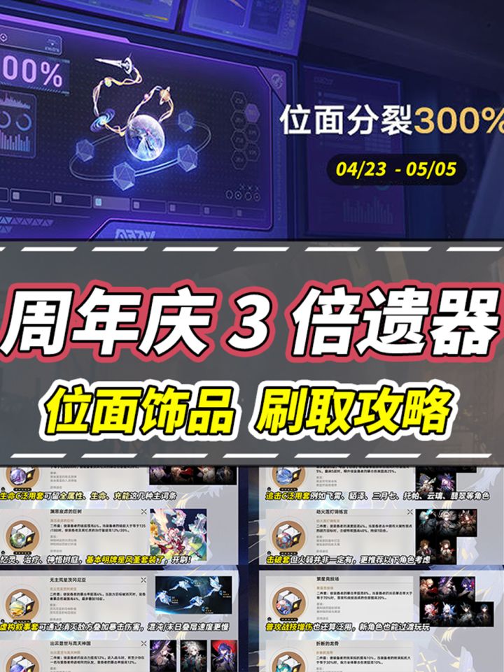 周年庆特别活动‘3倍位面饰品掉落’即将开启!考虑到崩铁合成台0延迟上新的机制,此类活动仅推荐刷取‘两套遗器同时有效’的关卡。至于那些双套装仅需要其中一项,完全可依靠合成台合成,没必要在此类双/三倍活动中浪费次数。