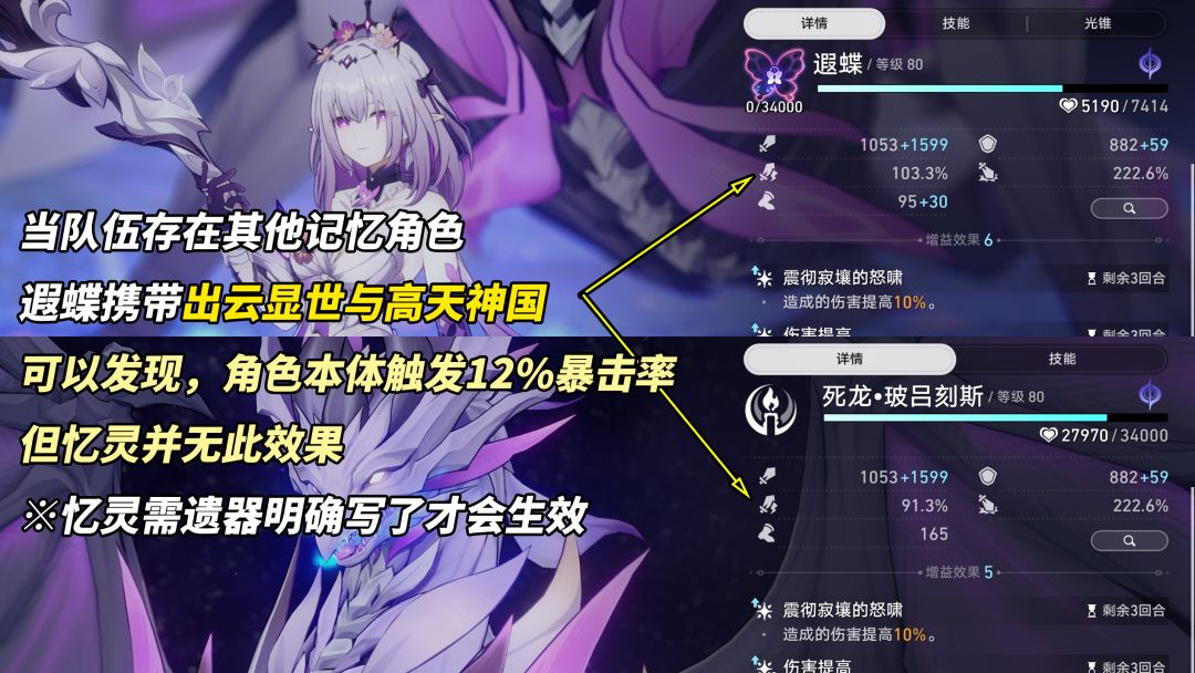 ※可能很多玩家在想,记忆主+记忆C行不行?很可惜,记忆命途的忆灵吃不到出云套的暴击率!