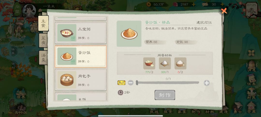ps :在商人那买点种子啥的,像是蔬菜大豆种子进行种植,增加食物种类的多样性,因为你食物种类样性越多,丰盛度也会越高,能增加的经验值啥的也更高