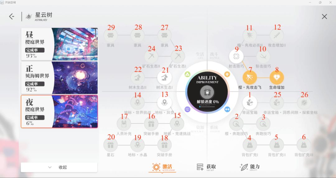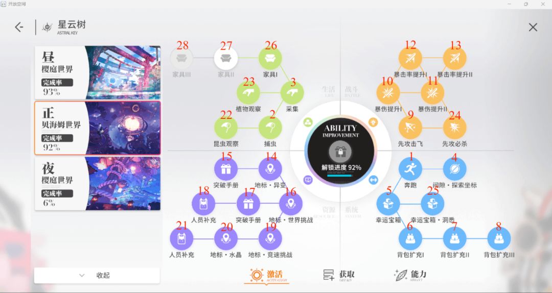 首先要说明一点,每个星云树中间的十抽,你不仅要完成所有的收集任务,还需要在当前世界采矿,砍树,打怪。把剩下那两三点分支点了才有那十抽,平时不收集的玩家(比如我)有难了。