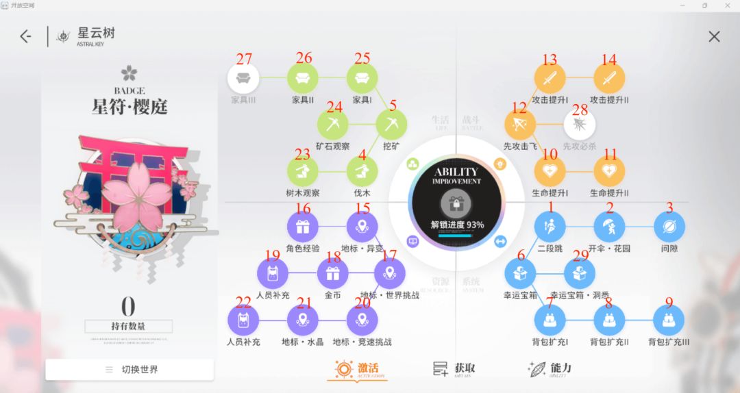 1.完成此世界的主线任务章节,完成的路上把能收集的都收一下,空间入口看到了在门口站一下就行。获取的星云树点数拿去解锁地标。