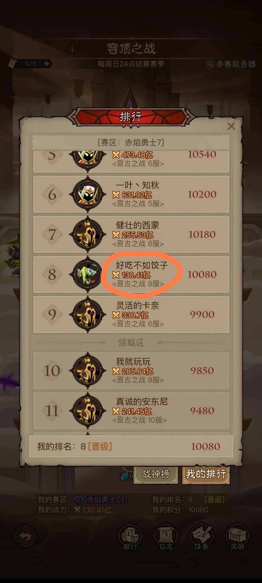 图四:目前穹顶之战排名,130亿的战力格外显眼