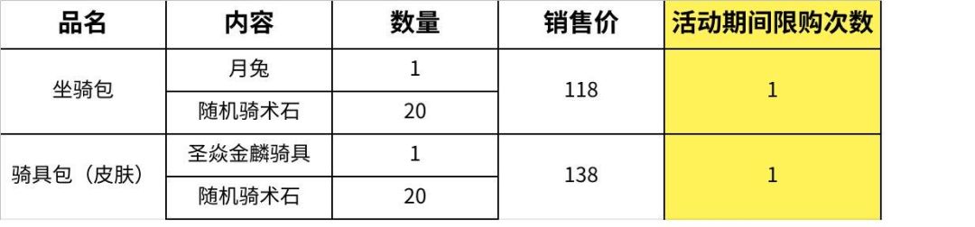 坐骑及皮肤返场:本次返场内容为月兔坐骑和麒麟的骑具皮肤!返场不易不容错过~