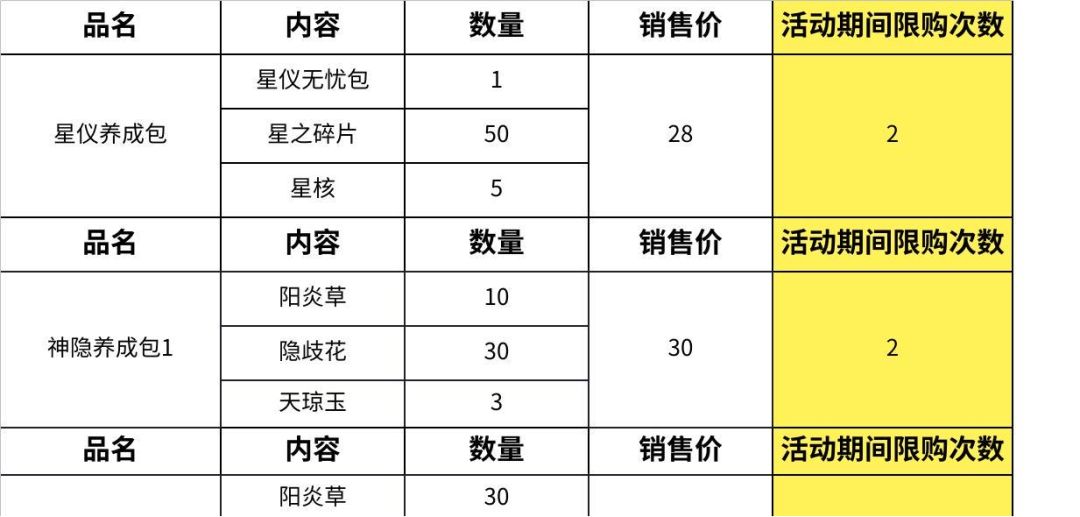 养成系列大合集:各种养成内容,无需等待,结算时一次性发放~快看看有没有自己需要的吧!【ps:星仪养成包中的星仪无忧包为自选礼包,打开后将获得88星仪币,并可在(荡幽*288/肃息*128/执明*68/陵光*28)中自选需求道具】