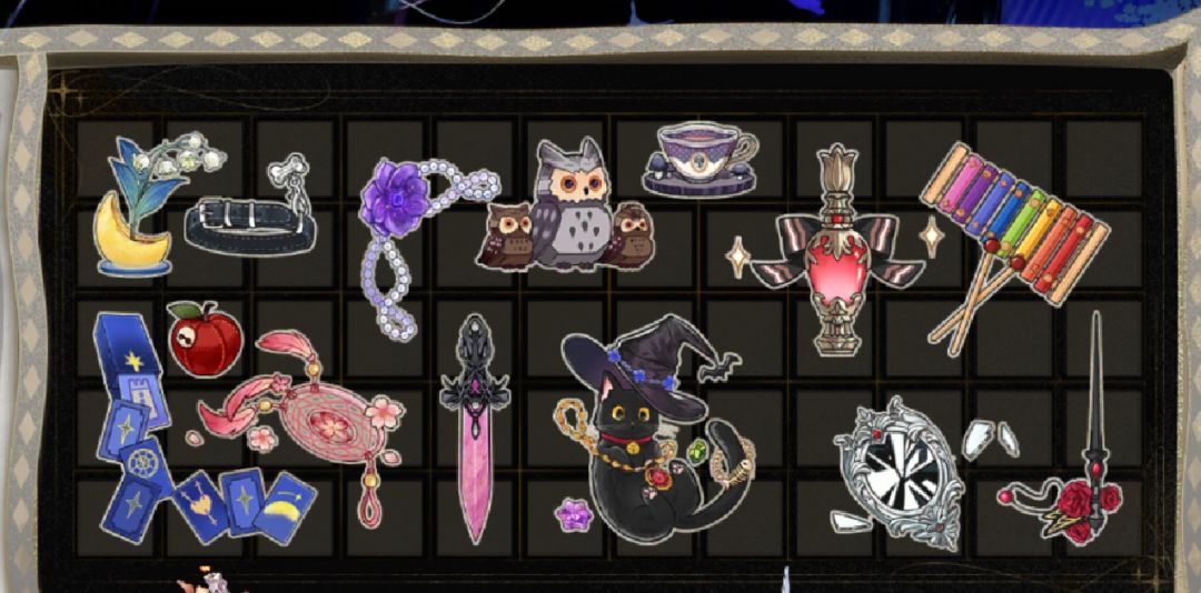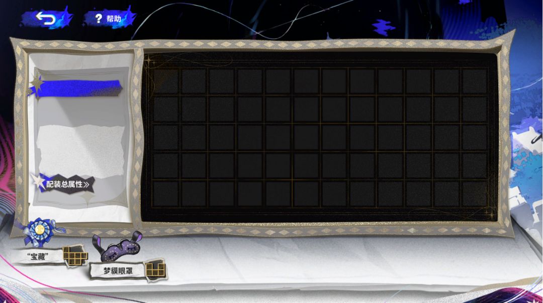 其中美梦徽记获得后需要放到一个盒子中。点击右下角的苹果形状的图形可以进入摆放界面,是一个12*5的盒子。根据每个美梦徽记不同形状进行摆放。