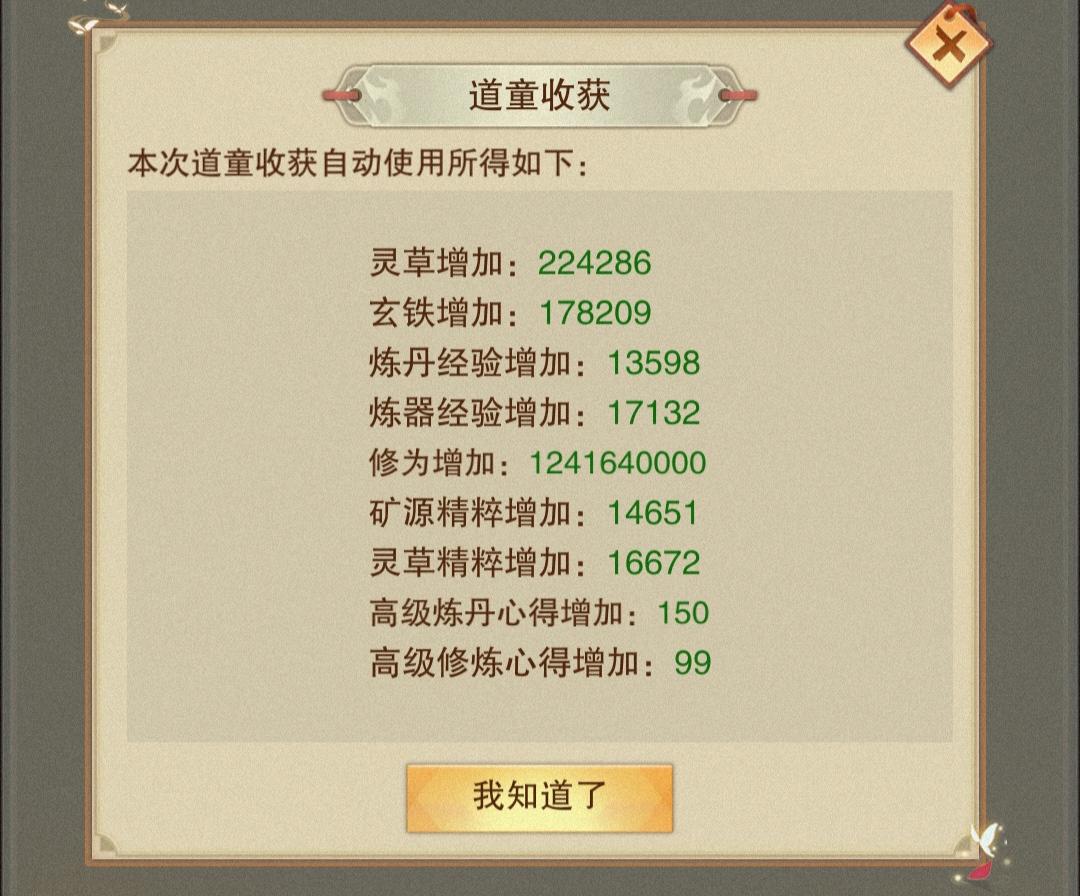 这是协助修炼的收益截图。。炼丹心得跟修炼心得我已经溢出就对我没用了