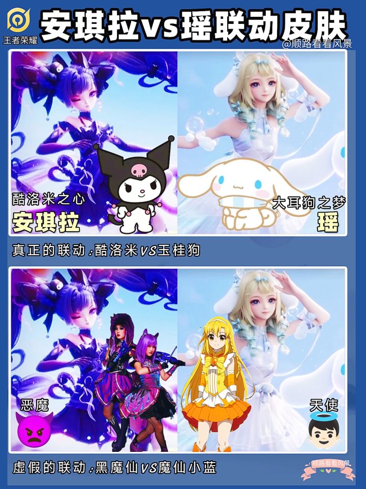 安琪拉看是联动库洛米,瑶妹看是联动玉桂狗。