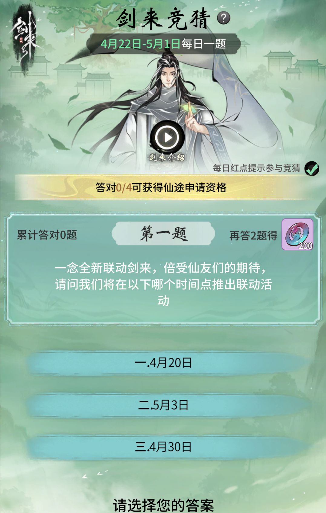 4月30日联动新大区开放“一念剑来”活动全服福利密令全服抽奖页面新区专属密令新区免费100抽新区神秘赛事回归限定道号