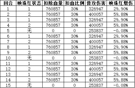 根据视频依次记录15个回合雷月如的扣血和增伤如下表: