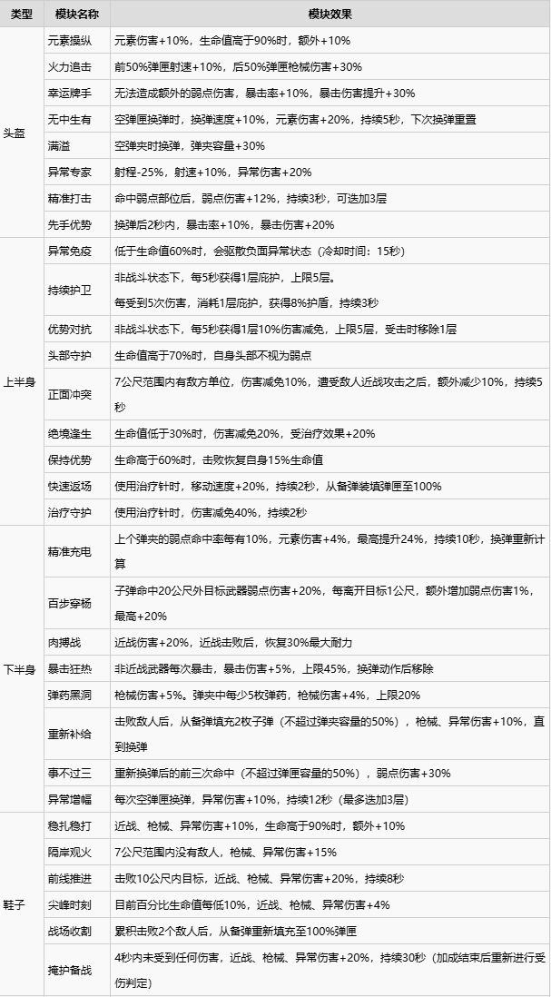 《七日世界》中的防具模组可以根据防具部位进行分类,那么游戏中的模组都有哪些词条效果呢?下面为大家带《七日世界》防具模组效果整理,一起来看看吧。