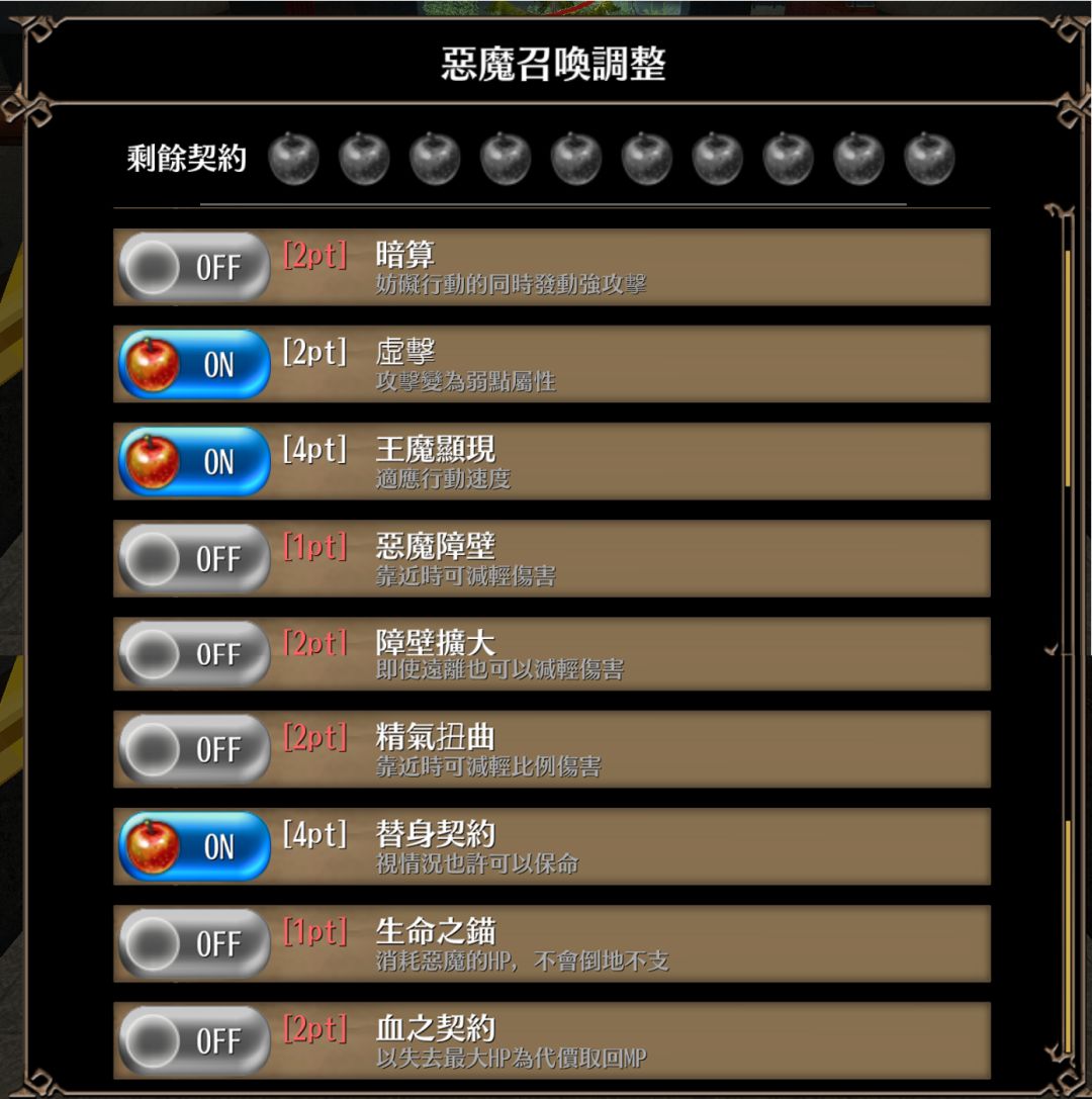 同时,恶魔可以通过EX技能获得强化,强化点数有10pt(该技能点满的情况下)