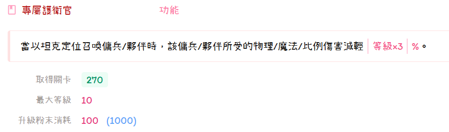 剑盾作为对佣兵高度依赖的职业,为佣兵减轻30%的百分比伤害对于佣兵的生存有极大提升