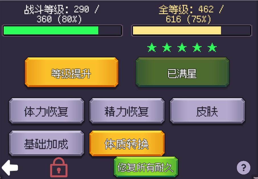 对主角皮肤不满意的,可以通过[皮肤]按钮进行替换,想转职业的可以通过[体质转换]