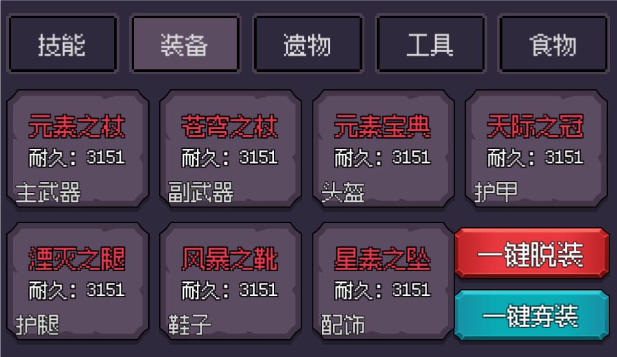 装备穿满一套后,会额外获得套装加成,如果你材料没那么多,够一套红色品质