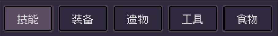 中间这部分,第一个技能我们在前面第二节中有讲到,而最后两个的工具和食物,则是没有作用