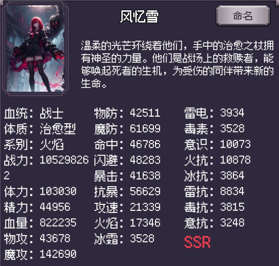 点击主角的立绘,就可以看到具体的面板属性