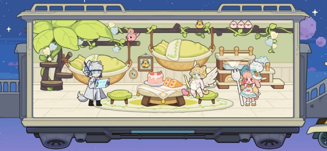 >>>丰富的乘客X家具互动效果,你可以观察到仙子喵白天偷偷跳进树床里打盹、赏金猎犬靠着椅子弹起吉他,吸血鬼喵在餐桌边优雅进食...