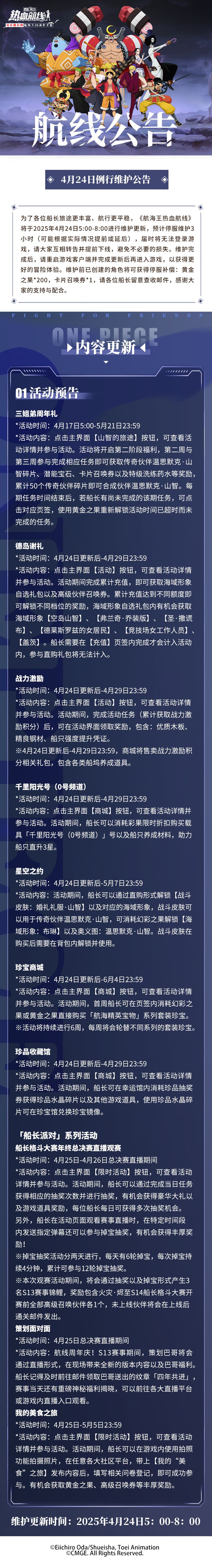 每周例行维护,周年福利活动持续进行中!温思默克山智参与任务免费获取,船长格斗大赛总决赛即将开打,谁才是S13赛事锦鲤?