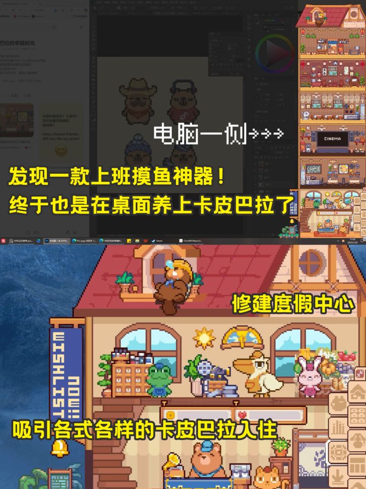 卡皮巴拉和摸鱼达人双厨狂喜!在steam上发现了这款在电脑桌面🖥️就能玩的度假中心模拟经营游戏🏨