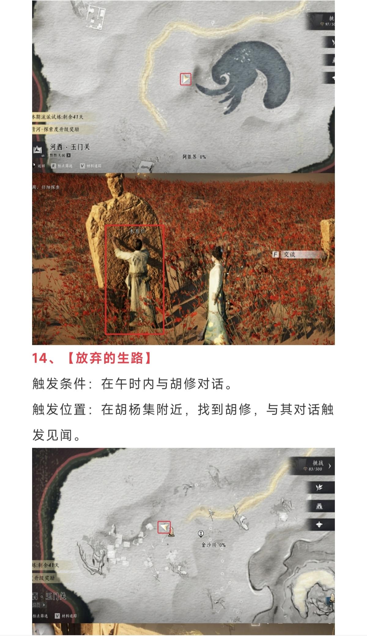 本周更新内容预告,新增【株连九族】玩法,新增6元新时装,立夏福利活动,河西玉门关15个见闻合集!不打劫的沙匪,吃人的白头城,家族隐秘,村人再归,蒙尘希望,窣利的辉煌,断裂的商路,何以为乡,珍珠舟,千年不死,黄金之乡,挖渠人,并排的名字,阿依苏的水,放弃的生路,粮食来路!