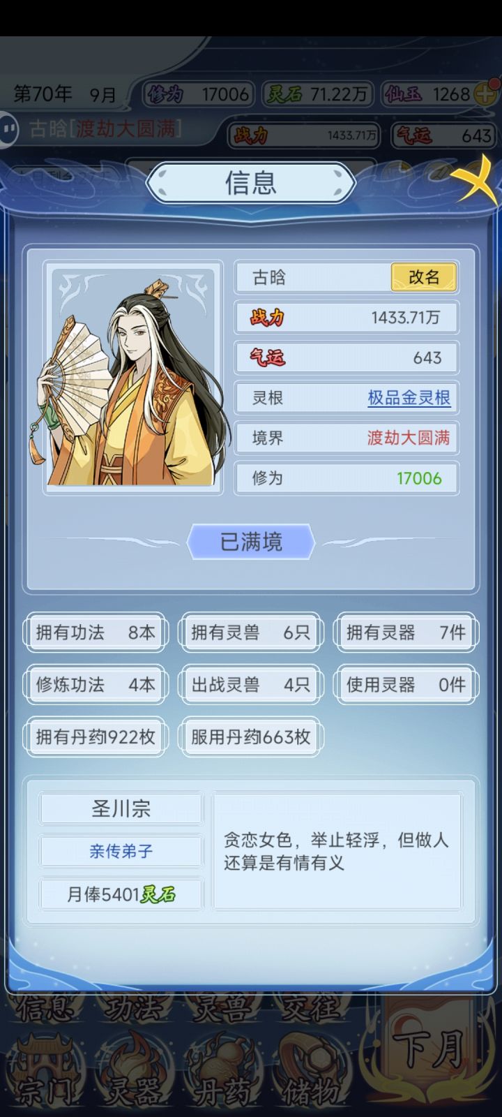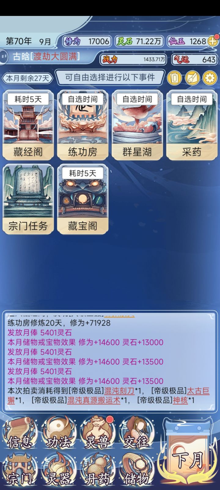 68岁渡劫大圆满(最高),现在开始进修最强灵兽和武器