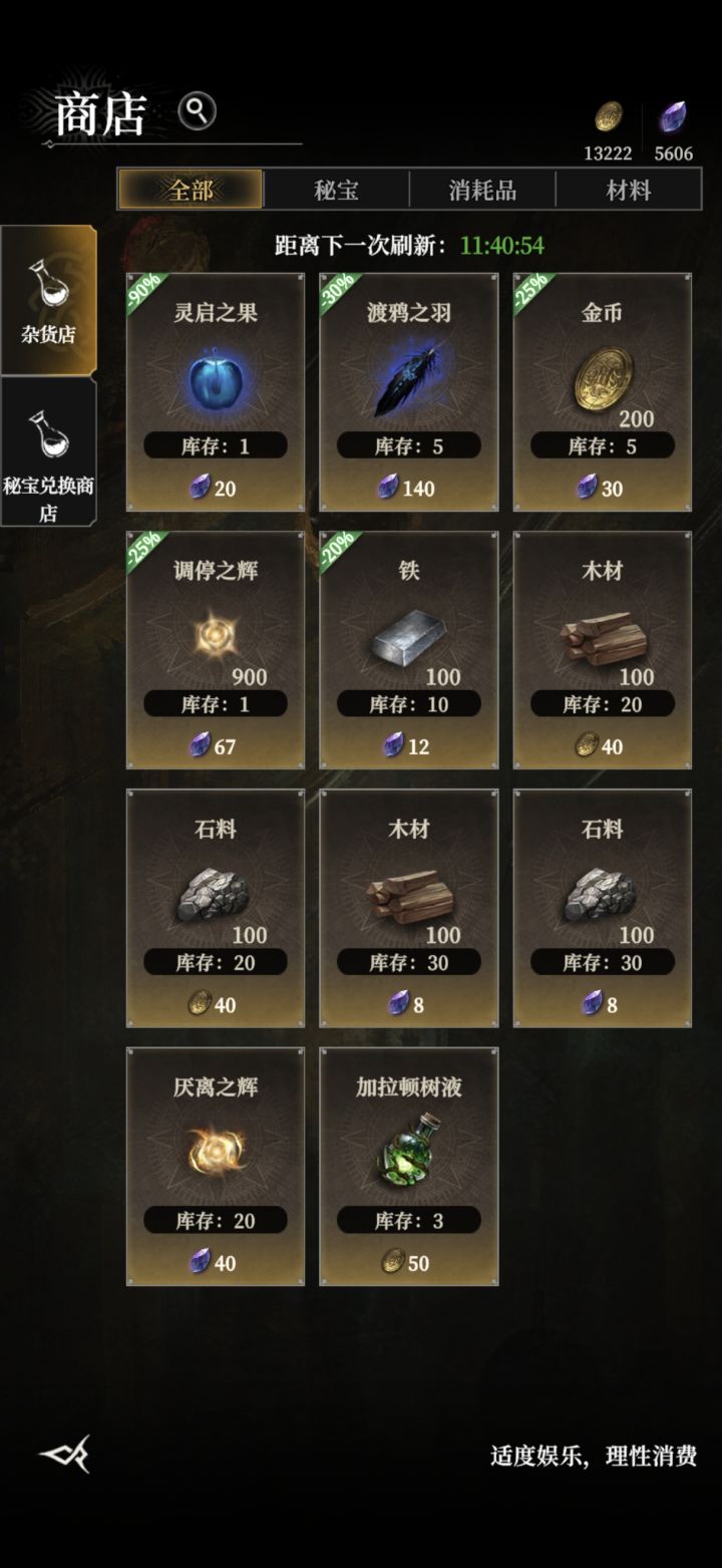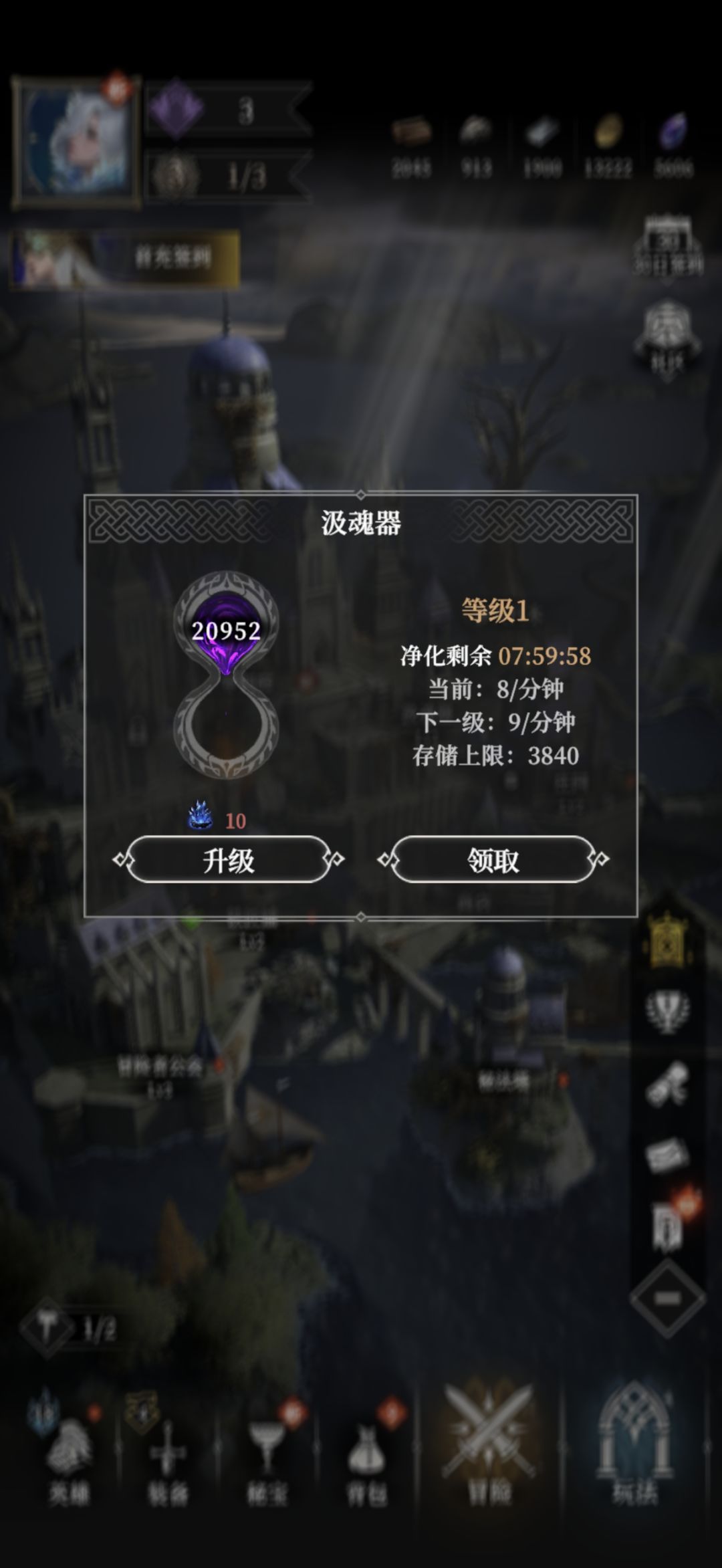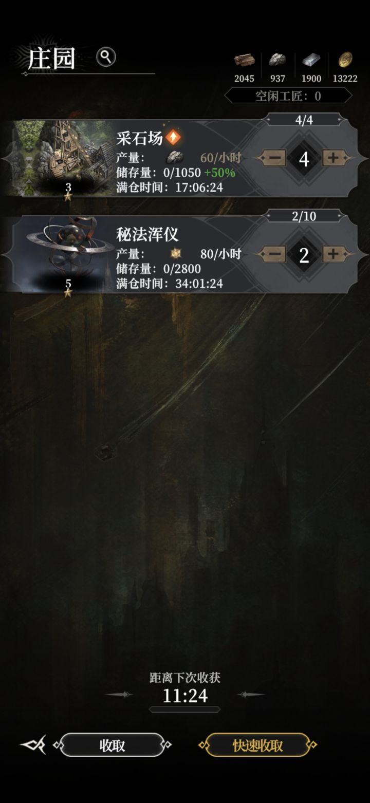 2.庄园可以派遣获取的工匠来干活,来获取石头和秘宝升级的辉光。工匠在推图时会逐渐获得。