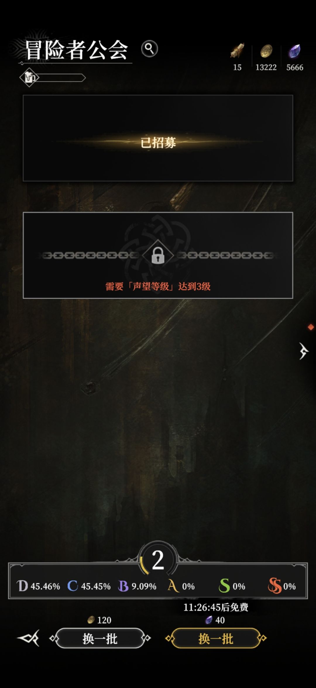 5.公会,就是招募人物的地方,可以升级来提高获得高品质人物的概率,可以使用钻石金币或者卷轴招募。