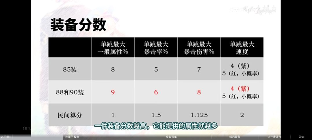 8、关于装备分数的算法有官方的(装备右下角)也有民间的(计算副词条占比的值,具体算法就不讲了),以下讲解的装备分数为官方算法