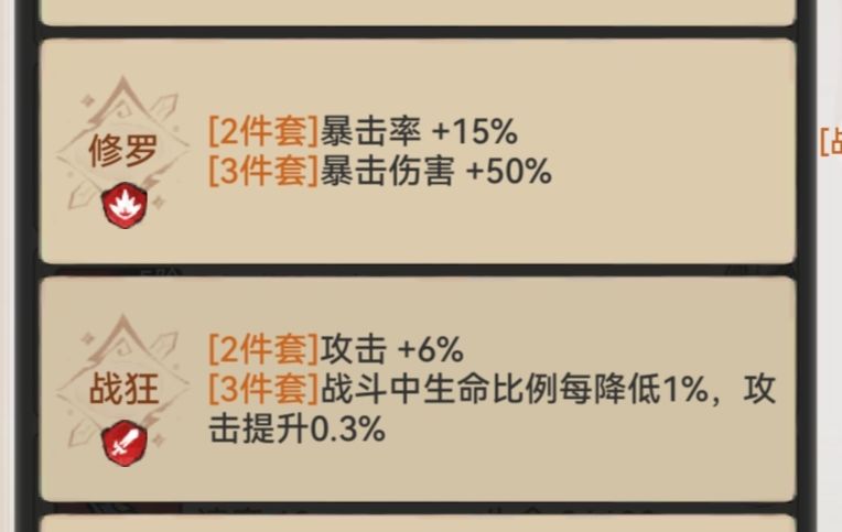 输出装备首选修罗套,能显著增加输出能力,词缀优先选择攻击百分比。