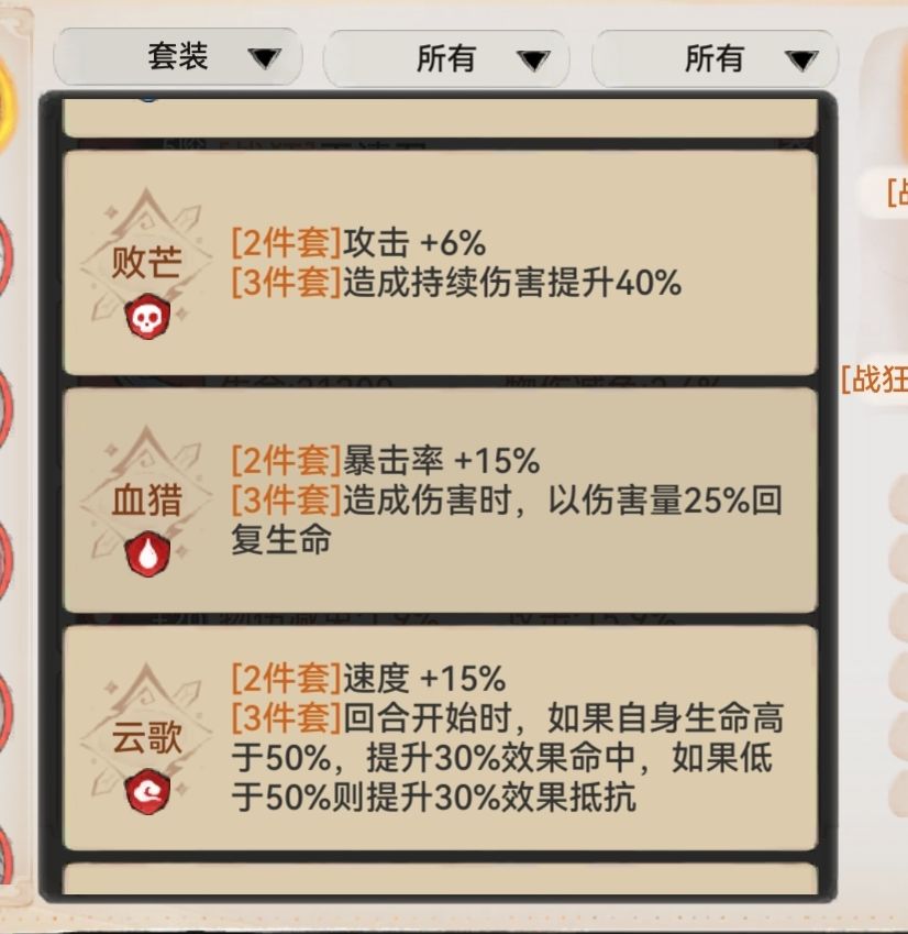 也可选择战狂、败芒2+2搭配,最大限度提高天水刀攻击力。
